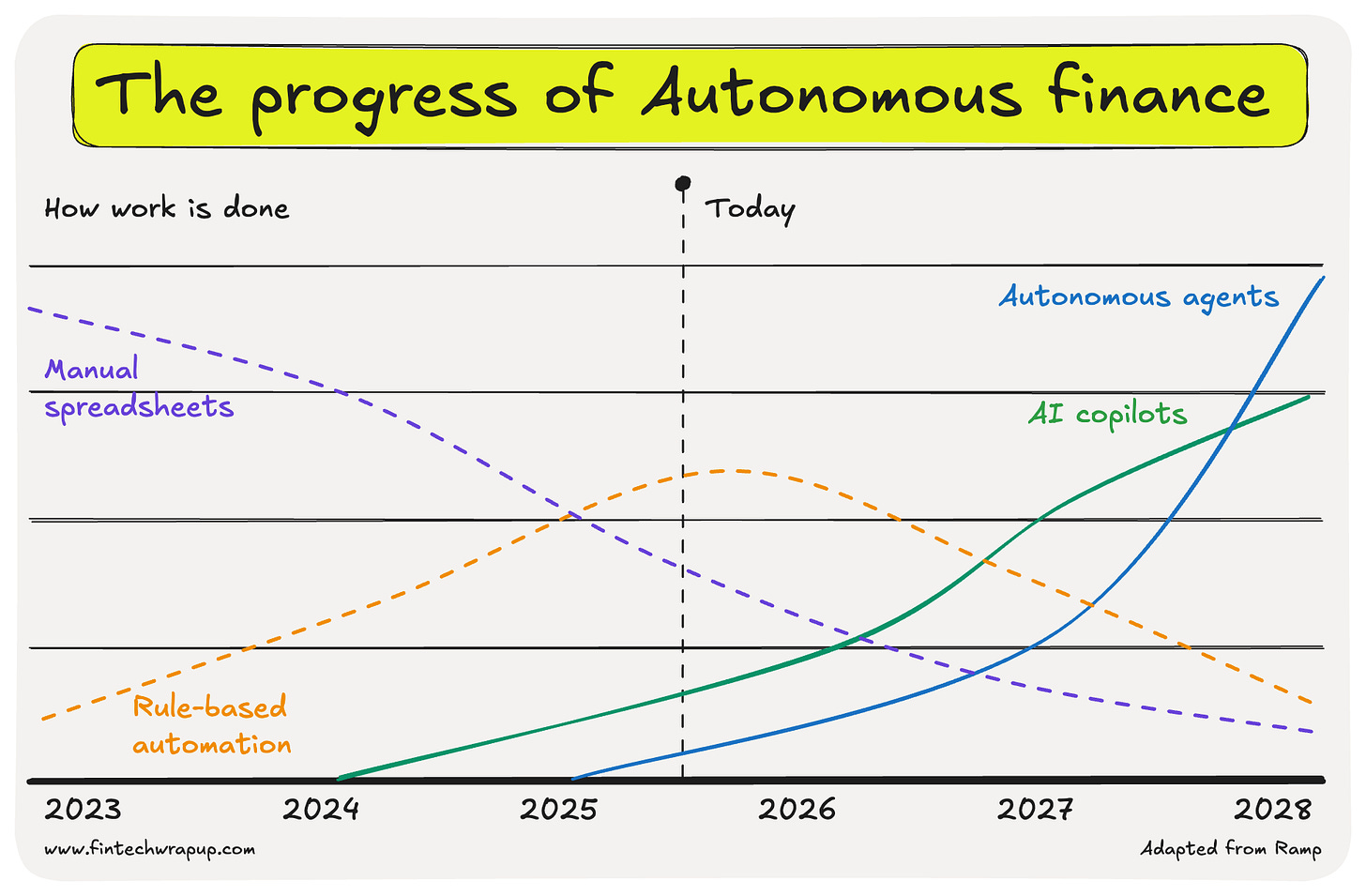 In case you missed the memo, investors are throwing serious money at this trend. Ramp’s recent $500M raise (at a $22.5B valuation) is a big green light to accelerate AI-for-finance innovation. The company openly frames its mission as building “the future of finance” on the back of AI agents. As CEO Eric Glyman quipped, 45 days ago we said “let the robots chase receipts” and raised $200M; now they’re doing much more, so we raised another $500M. It’s not just Ramp, either. The whole industry sees the writing on the wall: CFOs everywhere are asking their teams for an “AI plan”. One day you’re closing the books in Excel; the next, your CFO wants to know how AI can close them faster. Gradually, then suddenly, indeed.