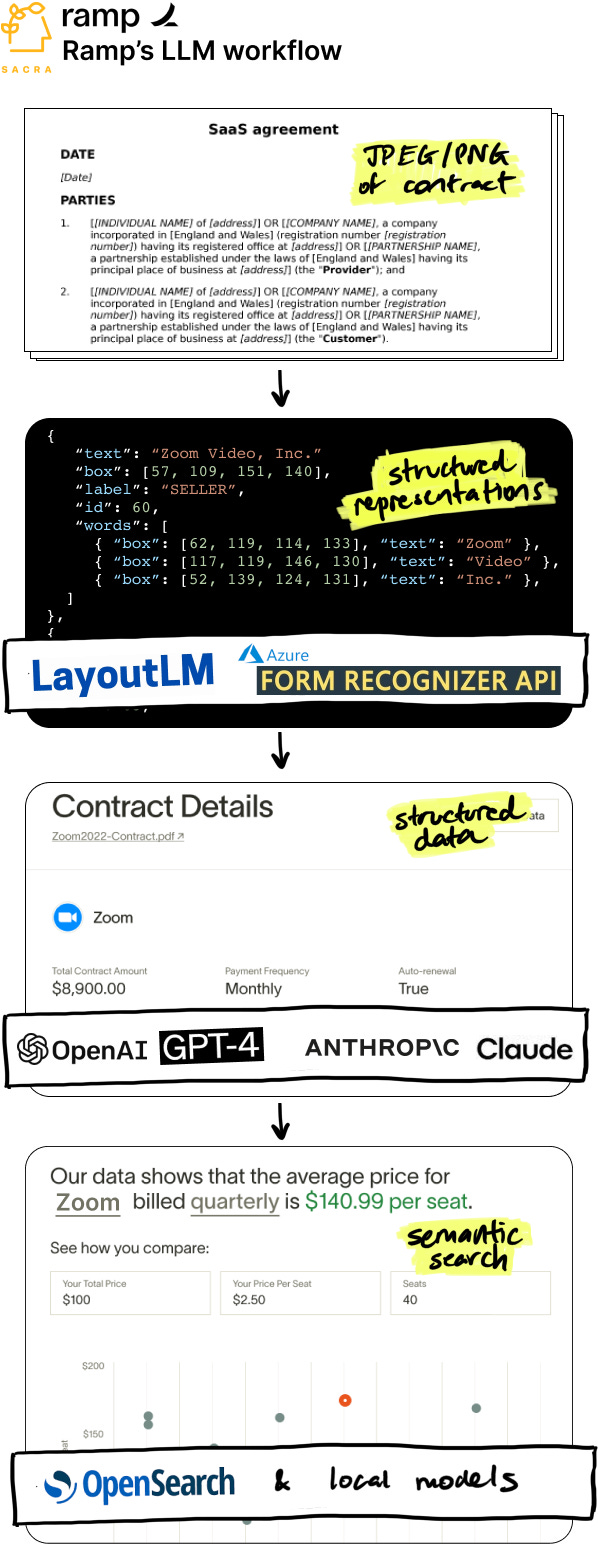 Ramp’s use of AI isn’t just for employee receipts. They’re gunning for accounts payable (AP) automation – think vendor invoices and bill payments – an area owned by incumbents like Bill.com and SAP Concur. By layering OCR on incoming bills, Ramp can ingest messy PDF invoices and turn them into structured data in seconds. LLMs then “understand” the invoice language and output structured metadata (vendor name, due date, line items, etc.). This supercharged data extraction gives Ramp a force multiplier to automate AP/AR workflows that used to require armies of accounts payable clerks or outsourcing to BPOs. In practical terms, the AI can read an invoice, match it to a purchase order, flag any discrepancies, and even schedule a payment – no human keying required. Ramp’s CEO even boasts that today their bots are “filing your expenses, booking your travel, paying your invoices, and closing your books”. If that isn’t end-to-end, what is?