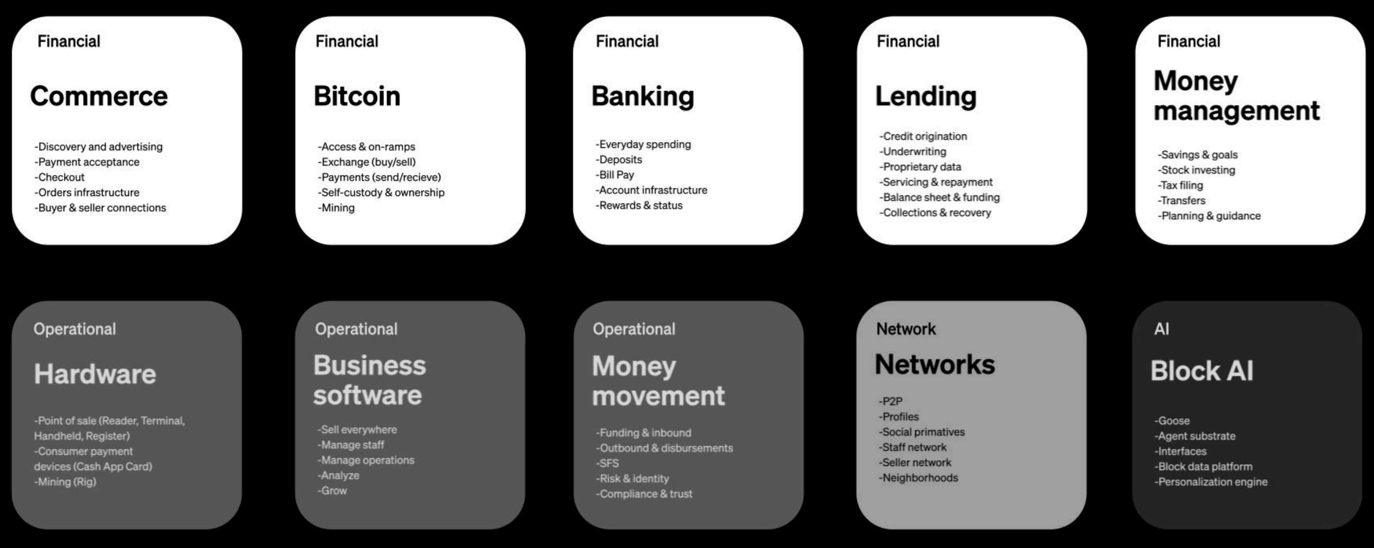 Remember when Square’s whole deal was that a little white card reader that plugged into your phone? Me too. Block has come a long way since those early POS days. As Jack Dorsey’s team tells it, they now have “an extremely unique set of product capabilities… from our hardware to our networks to our Bitcoin stack to our underwriting capabilities”. In plain English: they own the whole stack, the POS terminals, the payment rails (including a new global Bitcoin payments network), the software, and even the banking back-end.