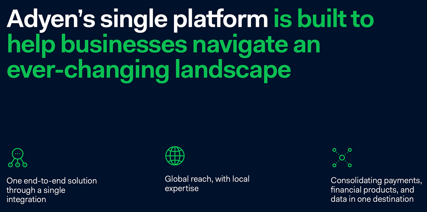 The global commerce and payments landscape is rapidly evolving, and Adyen’s strategy reflects this reality. Consumers expect to buy online, in-store, and everywhere in between, pushing businesses to offer seamless and personalized payment experiences across channels. Meanwhile, payment preferences vary widely by market, new local payment methods emerge, and regulatory demands grow – all driving companies to seek a financial technology partner that can navigate complexity and unlock value. Adyen has deliberately positioned itself as more than a payments processor: its single, end-to-end platform is built to address these challenges. By consolidating payments, financial products, and data in one place, Adyen helps businesses navigate an ever-changing landscape through one integration.