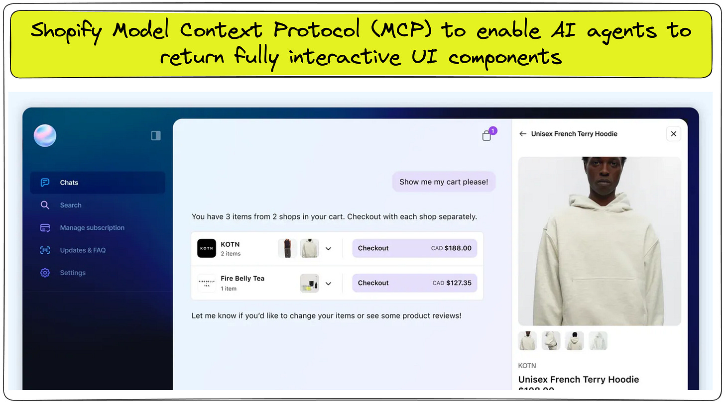 Hand-in-hand with the Global Catalog, Shopify introduced a Universal Cart and Checkout Kit to smooth the shopping journey in the AI era. The universal cart allows a shopper (or rather, their AI agent) to throw products from multiple Shopify stores into one cart and buy them together. Yes, you read that right – your customer could add a t-shirt from a boutique in New York, a coffee mug from a roaster in Seattle, and a gadget from a London merchant, then purchase all in one go. No messy multiple checkouts or logins. Shopify’s Checkout Kit makes this possible by embedding Shopify’s battle-tested checkout flow directly into the chatbot or app interface. From the user’s perspective, it’s a seamless cross-store shopping spree; behind the scenes, Shopify divvies up the orders to the respective merchants. Shopify CEO Tobi Lütke summed up the significance, saying with these tools, developers and AI platforms can onboard “all the best products by the best merchants in the world” without painstaking one-by-one integrations – “commerce just plugs in and feels seamless in conversations”.