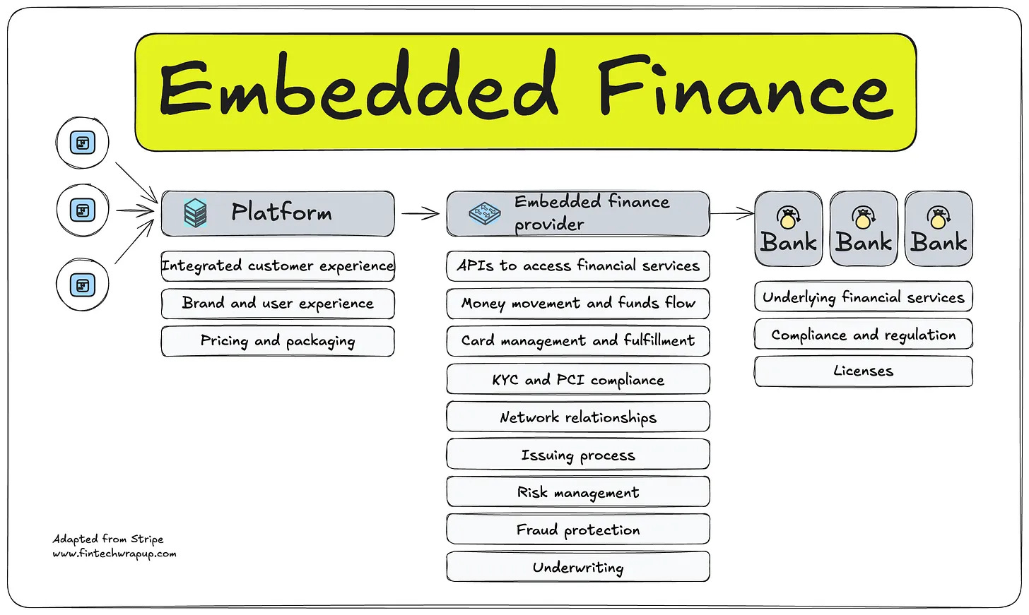 Embedded finance is the practice of weaving financial services directly into software products and platforms. In other words, non-financial apps and marketplaces let users access bank accounts, payments, lending, insurance or other financial tools without leaving the app they already use. This idea may sound daunting, but it’s rapidly becoming a core part of fintech and SaaS strategy. As startups and incumbents alike explore this new frontier, product leaders are asking: How does embedded finance work? What can we embed? Why invest in it – and what are the pitfalls?