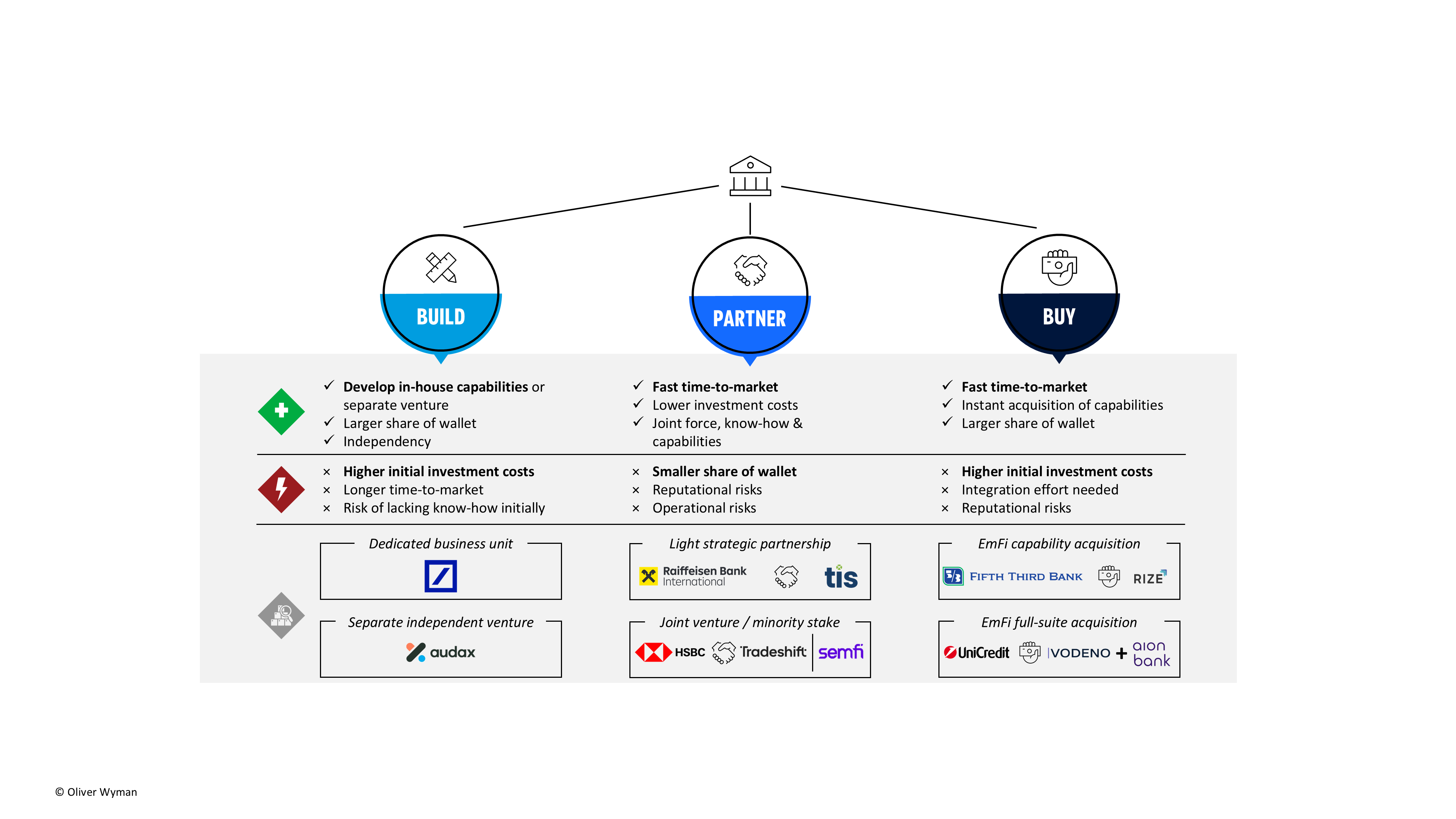 However, this is typically associated with higher investment costs and longer time-to-market, as capabilities need to be developed in-house and require therefore patience, senior executive commitment and willingness to invest.