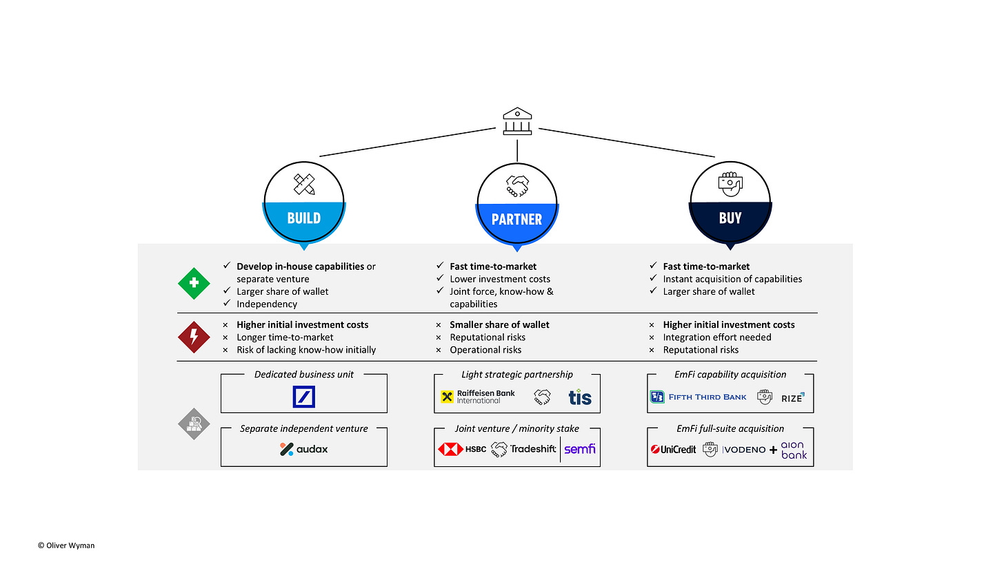 1️⃣ Three go-to-market approaches for banks to play in the Embedded Finance space